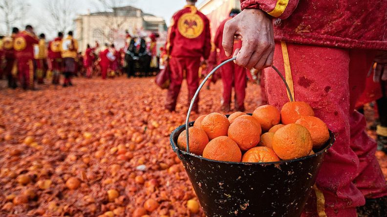 February — The Chocolate Fair in Florence, the famous Battle of Oranges in Ivrea (suburbs of Turin), the festival of Italian song in San Remo, the Roman carnival.
